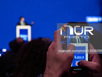 Argentine President Javier Milei addresses attendees during his closing speech at the AMCHAM Summit 2025 (American Chamber of Commerce in Argentina) in Buenos Aires, Argentina, on May 20, 2025.