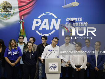 Jorge Romero, president of the National Action Party (PAN), the current opposition political party in Mexico, during a press conference in Mexico City, Mexico, on November 19, 2025, distances himself from the violent events of the Generation Z march last Saturday. He condemns the violence perpetrated by Mexico City police officers against the participants and points to the Black Bloc as allegedly responsible for disrupting the citizen mobilization.