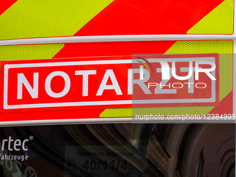 An emergency doctor and ambulance are on standby during FC Bayern Muenchen team's celebration for winning the league in Munich, Bavaria, Upper Bavaria, Germany, on May 18, 2025.