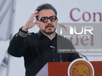 Director of the Mexican Social Security Institute (IMSS), Zoe Robledo, speaks about the construction of Child Care Centers (CECI) during a press conference at the National Palace in Mexico City, Mexico, on October 29, 2025.