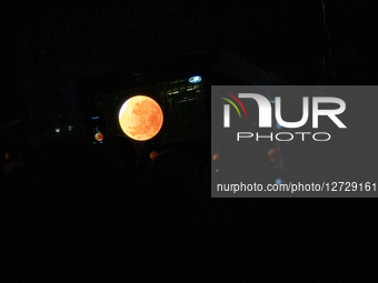 Residents record the total lunar eclipse using their mobile phones in Jakarta, Indonesia, on September 7, 2025.