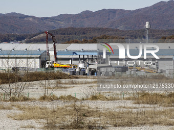 A view of the chemical terminal near Onsaemi Village in Umseong-Gun, South Korea, on November 10, 2025. The Jinyang Energy Chemical Terminal, located near the contaminated area, is responsible for two separate vinyl acetate monomer leaks on October 21 and 26.