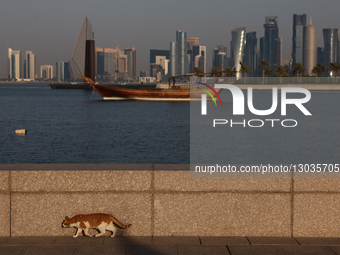 A view of the city as a cat is seen at MIA Park in Doha, Qatar on November 28, 2025.
