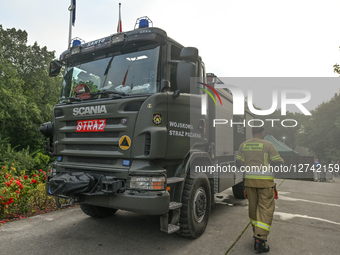 GDANSK, POLAND – SEPTEMBER 1: A Scania fire truck of the Polish Military Fire Brigade is seen during a ceremony commemorating the 86th anniversary of the outbreak of World War II on the Westerplatte peninsula in Gdansk, Poland, on September 1, 2025.