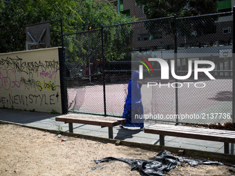 Melbourne, Australia, 25 march 2017. A refugee woman wearing the hijab walks in a park near the Fitzroy district. Melbourne is ranked as the world’s most liveable city for the sixth year running according the Economist’s global liveability survey.