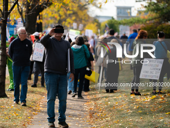 A man raises his phone to photograph freelance photojournalist Blnd Abdullah during the ''No Kings'' protest in Rochester, New York. The man later questions Abdullah, asking whether he is a government or undercover agent covering the event. Protesters gather during the ''No Kings'' demonstration in Rochester, New York, on October 18, 2025, calling for the end of monarchic systems and advocating for equality and people's rule. The rally includes speeches, signs, and chants criticizing inherited power and colonial legacies. The event is part of a series of local actions echoing global calls for justice and self-determination.