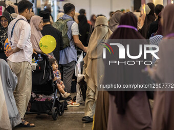 Visitors explore the Halal Culture Event at ICE BSD in South Tangerang, Banten, Indonesia, on October 25, 2025. The exhibition showcases Islamic traditions, including halal culinary arts, modest fashion, and cultural displays from various Muslim countries, celebrating the global diversity and unity of the Islamic world.