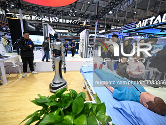 Visitors see a health care robot at the 2025 World Intelligent Manufacturing Conference at Nanjing International Expo Center in Jiangsu Province, China, on November 28, 2025.
