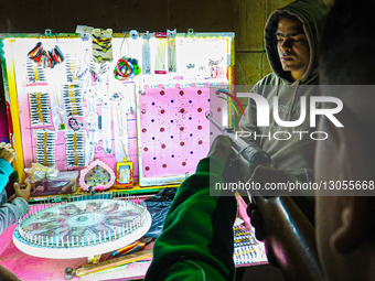 Children gather to play with a toy gun during the Mawlid celebrations commemorating the birth of Sayyida Nafisa, a descendant of the Prophet Muhammad, in Cairo, Egypt, on December 3, 2025.