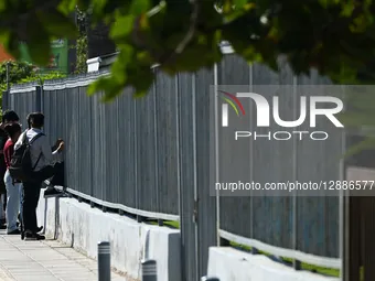 LARNACA, CYPRUS – OCTOBER 16: A line of visa seekers is seen outside the Immigration office near Kastella Beach in Larnaca, Cyprus, on October 16, 2025.