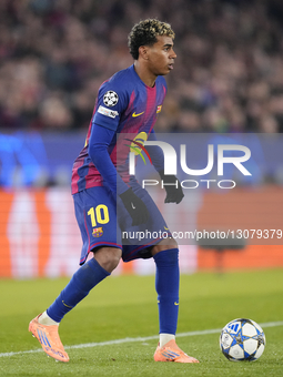 Lamine Yamal right winger of Barcelona and Spain during the UEFA Champions League 2025/26 League Phase MD6 match between FC Barcelona and Eintracht Frankfurt at Spotify Camp Nou on December 9, 2025 in Barcelona, Spain.