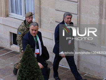 The Ukrainian delegation, including Omelchenko Vadym Volodymyrovych, Ambassador Extraordinary and Plenipotentiary of Ukraine to France, arrives at the Elysee Presidential Palace prior to the meeting between the French president and the president of Ukraine in Paris, France, on January 12, 2025.