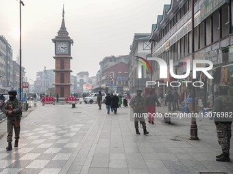 Indian paramilitary soldiers patrol near the clock tower (Ghanta Ghar) during a security check in Srinagar, Jammu and Kashmir, on December 09, 2025. Security is on high alert across the Kashmir Valley and along the international border with Pakistan following a deadly explosion near the historic Red Fort in Old Delhi, which kills at least twelve people. Indian Prime Minister Narendra Modi, on November 11, calls a deadly car explosion near the historic Red Fort in the heart of the capital that kills at least twelve people a ''conspiracy,'' vowing those responsible face justice. India's government confirms on November 12 that it treats a car blast that kills twelve people and wounds at least 20 others in Delhi as a ''terror incident'' and vows to bring the perpetrators to justice as swiftly as possible.