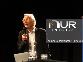 Bernd Eilert, a German writer, is seen on the stage of WDR Funkhaus in Cologne, Germany, on October 17, 2025, during the lit.cologne festival special edition