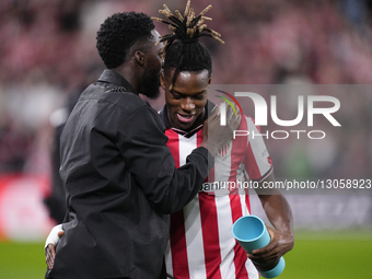 Iñaki Williams right winger of Athletic Club and Ghana gives MVP novembre trophy to Nico Williams left winger of Athletic Club and Spain prior the La Liga EA Sports match between Athletic Club and Real Madrid CF at Estadio de San Mames on December 3, 2025 in Bilbao, Spain.