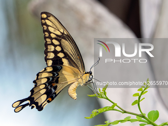 An Eastern Giant Swallowtail, the largest butterfly in North America, is seen in Sarasota, Florida. An adult's wingspan typically ranges from about 4 to 6 inches