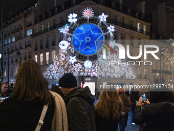 For the Christmas season and its Christmas illuminations, at 30 rue Montaigne street, the Christian Dior store, legendary birthplace of the House of Dior, exhibits its window display ''Monde enchante de Dior'' (The Enchanted World of Dior) in Paris, France, on November 16, 2025.
