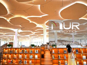 Citizens use public services at the Beijing City Library in Beijing, China, on September 6, 2025.