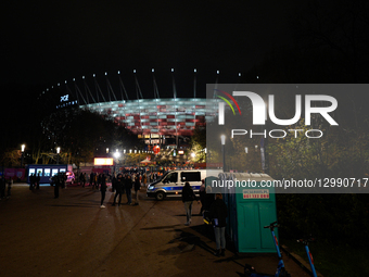 Police are seen ahead of the Poland-Netherlands qualifier match at the National Stadium in this file photo taken in Warsaw, Poland on 14 November, 2025. After the match between Poland and the Netherlands, the Polski Związek Piłki Nożnej (PZPN) issued a strong statement condemning the throwing of flares from the stands during the game at Warsaw’s PGE Narodowy, emphasising that such behaviour is unacceptable and illegal, and that the safety of the stadium environment is their priority.