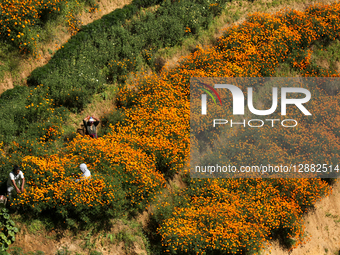 Florists Go Busy Plucking “Tagetes Erecta Linn” Commonly Called Marigold For Hindu Festival Tihar/ Diwali