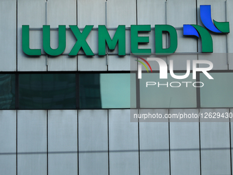 The Luxmed logo is seen on the street in Warsaw, Poland, on August 6, 2025.