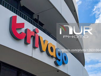 The exterior signage of the Trivago headquarters is in Duesseldorf, North Rhine-Westphalia, Germany, on July 30, 2025. Trivago N.V. is a German technology company specializing in travel and lodging, operating an online metasearch engine for hotel prices and accommodation booking.