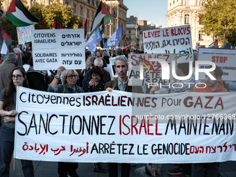 Protesters take part in the 'Stop the Genocide' rally in support of Gaza, at Place de la Republique, in Paris, France, on September 17, 2025. Israel's army says on September 17, 2025, it opens a temporary new route to allow people to flee Gaza City, a day after launching a major ground assault aimed at crushing Hamas. The Israeli military unleashes a massive bombardment of Gaza City before dawn on September 15, 2025, and pushes its troops deeper into the Gaza Strip's largest urban hub. It comes as a United Nations probe accuses Israel of committing ''genocide'' in the Palestinian territory, saying Prime Minister Benjamin Netanyahu and other senior officials incite the crime.