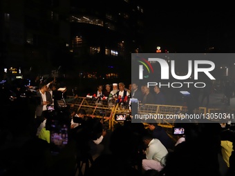 Political activists and journalists gather in front of Evercare Hospital in Dhaka, Bangladesh, on November 29, 2025, as Bangladesh's former prime minister Khaleda Zia undergoes treatment in the intensive care unit.