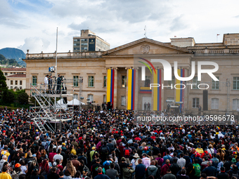 People gather at Colombia's presidential palace 'Palacio de Narino' during a demonstration to support Colombian government reforms in Bogota, Colombia on February 14, 2023.