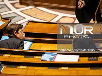 Edouard Geffray, Minister of National Education, and Francoise Gate, Minister attached to the Minister for Regional Planning and Decentralisation with responsibility for Rural Affairs, are seen during a session of questions to the French government at the National Assembly in Paris, France, on December 3, 2025.