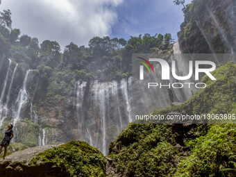 Tourists visit the Tumpang Sewu waterfall in Lumajang, East Java, Indonesia, on December 6, 2025. Tumpang Sewu is a waterfall that flows widely as if there are a thousand of them. Tourists from various countries like the Tumpang Sewu waterfall.