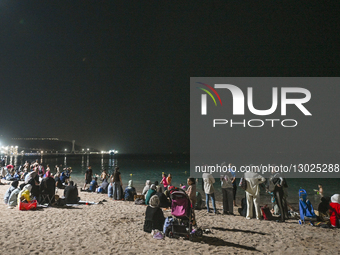 AQABA, JORDAN - OCTOBER 24: A general view of Aqaba beach as people enjoy warm weather at sunset in Aqaba, Aqaba Governorate, Jordan, on October 24, 2025.