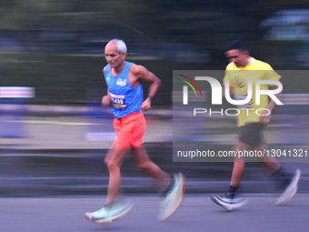 People participate in a marathon run in Kolkata, India, on November 30, 2025.