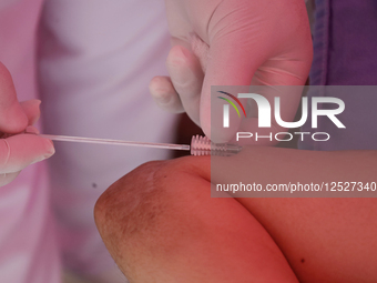Medical personnel at the Maternal and Child Hospital in the Tlahuac municipality of Mexico City provide free subdermal hormonal implant placement, which prevents ovulation by blocking sperm from entering the uterus, on July 3, 2025.