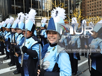The L.D. Bell Blue Raider Band performs during the 99th Macy's Thanksgiving Day Parade in New York, United States, on November 27, 2025.