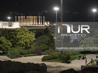 Scale models of Iran's Persepolis and Greece's Temple of the Parthenon are pictured in the Mini World Tourist Complex in Malayer, Iran, on September 7, 2025, at night. Mini World in Malayer, located in Hamedan Province, is a large-scale cultural and tourism project that showcases scale models of iconic landmarks from Iran and around the world. The park, built to promote tourism and cultural awareness, includes models of historic monuments such as Persepolis, the Eiffel Tower, the Taj Mahal, the Mausoleum of Hafez, the Veresk bridge, the Mausoleum of Omar Khayyam, Greece's Temple of the Parthenon, and the Egyptian pyramids.