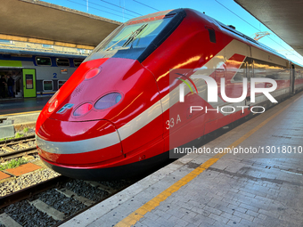 A train is at Firenze Santa Maria Novella (Firenze SMN) in Florence, Tuscany, Italy, on November 23, 2025. From 9:00 PM on November 27, 2025, to 9:00 PM on November 28, 2025, some unions proclaim a national strike that may affect the Regional Train and Long-Distance services of Italian Railway companies.