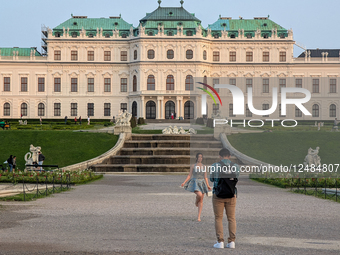 Visitors take photos in front of the Upper Belvedere, a Baroque palace in Vienna, Austria, on June 9, 2025. The palace is part of the Belvedere complex, one of Vienna's major historic sites.