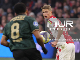 Sean Steur of AFC Ajax plays during the match between AFC Ajax Amsterdam and Feyenoord Rotterdam at the Johan Cruijff ArenA for the Dutch Vriendenloterij Eredivisie season 2025-2026 in Amsterdam, Netherlands, on December 14, 2025.