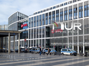 Police vans are stationed near Cologne Central Station in Cologne, North Rhine-Westphalia, Germany, on September 11, 2025.