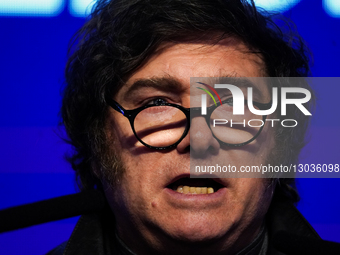 Argentina's President Javier Milei talks after legislative provincial election polls close in La Plata, Argentina, on September 7, 2025.