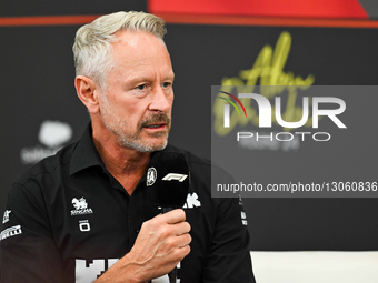 Jonathan Wheatley of Stake F1 Team kicks Sauber during a press conference in Yas Island, Abu Dhabi, on December 5, 2025.