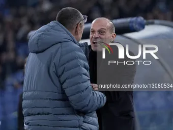 In Rome, Italy, on December 4, 2025, Massimiliano Allegri, head coach of AC Milan, talks with Maurizio Sarri, head coach of S.S. Lazio, prior to the Coppa Italia round of 16 match between SS Lazio and AC Milan at Olimpico Stadium.
