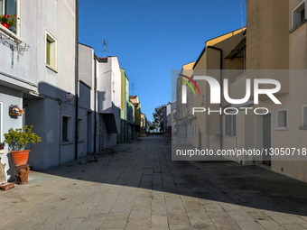 A social housing complex designed by architect Giancarlo de Carlo is seen on Mazzorbo Island in Venice, Italy, on November 18, 2025. The complex features two-storey buildings inspired by typical Venetian vernacular architecture and is built in 2003, providing different types of accommodation.