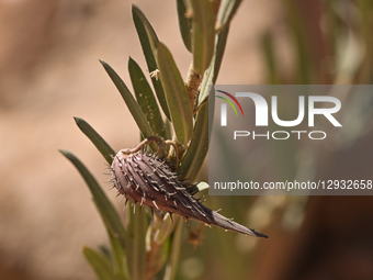 PETRA, JORDAN – OCTOBER 26: A view of the rare plant Gomphocarpus sinaicus along the High Place of Sacrifice Trail inside the ancient Nabataean city of Petra, in Petra, Jordan, on October 26, 2025.