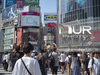 People cross Shibuya Crossing one of Tokyo's most recognizable sights, pictured in countless films, magazines and blogs. During its busiest times, an estimated 1,000 to 2,500 people forge their way across this intersection every two minutes ,on August 17, 2025 in Tokyo, Japan. NO SALES POLAND