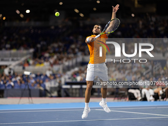 Joao Fonseca of Brazil returns a shot during the Miami Invitational at loanDepot Park in Miami, Florida, on December 8, 2025.