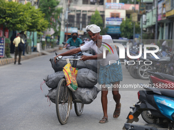 An elderly man pushes his bicycle loaded with goods in scorching heat in Birgunj, Nepal, on July 24, 2025, despite the rising mercury. An emergency cabinet meeting in Nepal on July 23, 2025, declares Madhesh province a disaster crisis zone as severe drought hits the nation's breadbasket. The unusual absence of rain in the Southern plains of Nepal in mid-monsoon pushes the region into a state of crisis. The government makes the declaration under Sub-section 1 of Section 32 of the Disaster Risk Reduction and Management Act, 2017. Due to acute water shortages, farmers are unable to transplant paddy. The drought leaves seedbeds dry, and paddy saplings wither, sparking fears of an impending food shortage in Nepal's major rice-producing region. The scarcity of water during mid-monsoon in the Tarai, Nepal's food basket, threatens not only farmers' livelihoods but also the national economy.