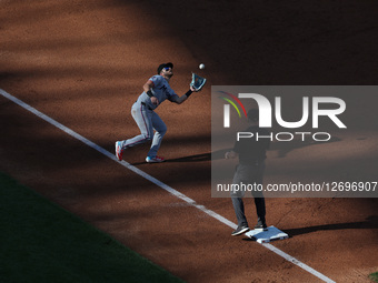 Miami Marlins third baseman Connor Norby makes a catch during the second inning of a baseball game against the New York Mets at Citi Field in Corona, N.Y., on August 30, 2025.