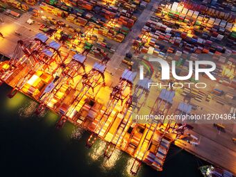 Cargo ships load and unload containers at the Qingdao Port Foreign Trade Container Terminal in Qingdao, Shandong Province, China, on September 1, 2025.